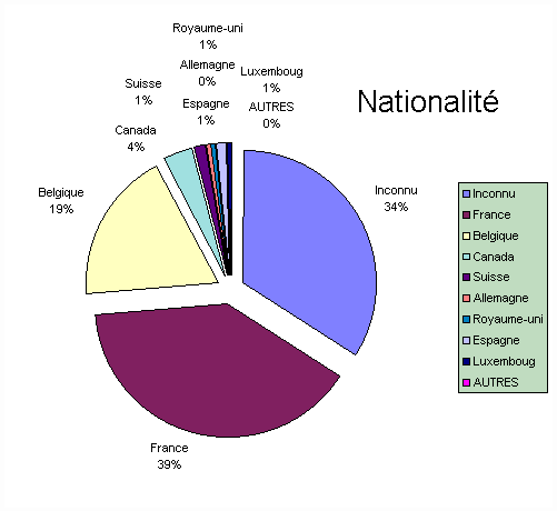 Peu de changement par rapport à 1998. Les francais (39 %) sont deux fois plus nombreux à visiter le site que les belges (19%). Les "inconnus" représentent un tiers des visiteurs.