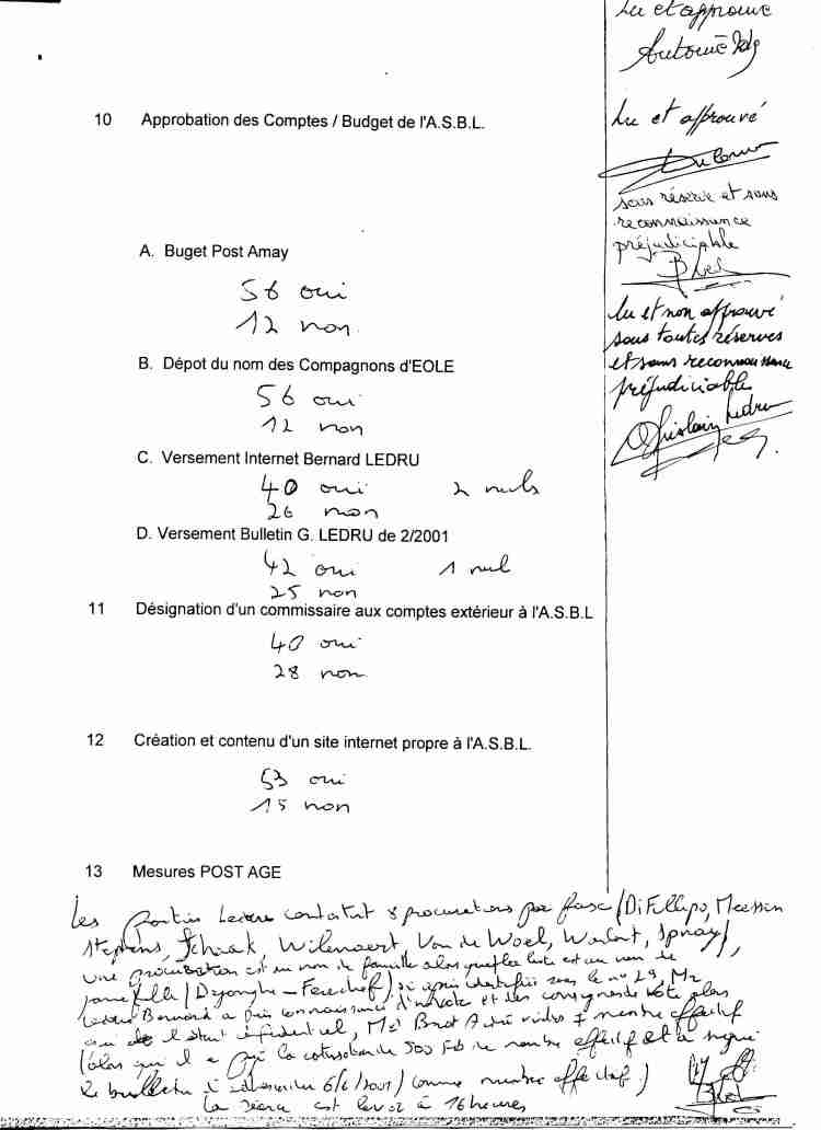 Remarque : Les personnes qui le souhaitent peuvent consulter les pièces originales au secrétariat ou aux archives de l'association. Elles peuvent également, conformément à l'article 13 de nos statuts, en demander copie conforme signée par deux administrateurs à prix coûtant.