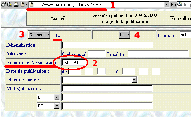 En résumé, si vous introduisez le nom de l'association sur le serveur "tsv" vous risquerez de croire que l'association n'a rien publié depuis le 1er juillet 2003. Mais, si vous faites la même requête sur le serveur "vwz", vous obtiendrez peut-être un résultat qui vous permettra de connaître le numéro de l'entreprise. Il ne vous restera alors plus qu'à retourner sur le premier serveur.