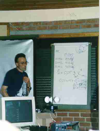 Décédé, à l'âge de 42 ans des suites d'une pénible maladie, le 1er octobre 2000. Restent principalement à notre mémoire sa générosité et sa contribution remarquable au développement des éoliennes "artisanales" en Belgique. (lors d'un exposé en mai 1999, photo)